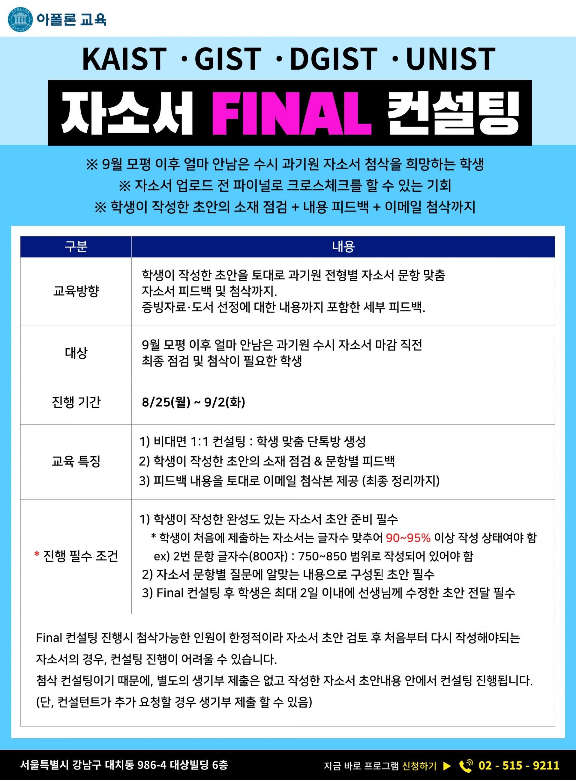 (주)아폴론교육 | 대표 : 신형섭 | 주소 : 서울특별시 강남구 대치동 986-4 (도곡로93길 9) 대상빌딩 6층