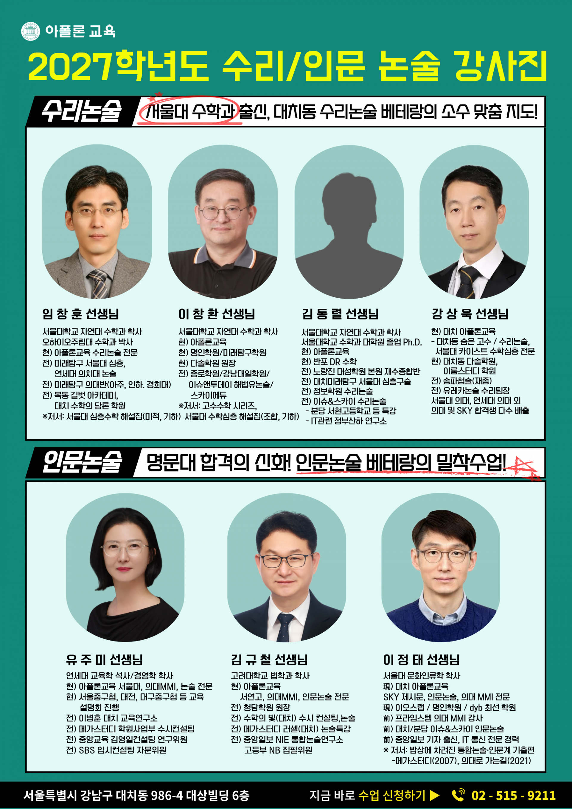 (주)아폴론교육 | 대표 : 신형섭 | 주소 : 서울특별시 강남구 대치동 986-4 (도곡로93길 9) 대상빌딩 6층