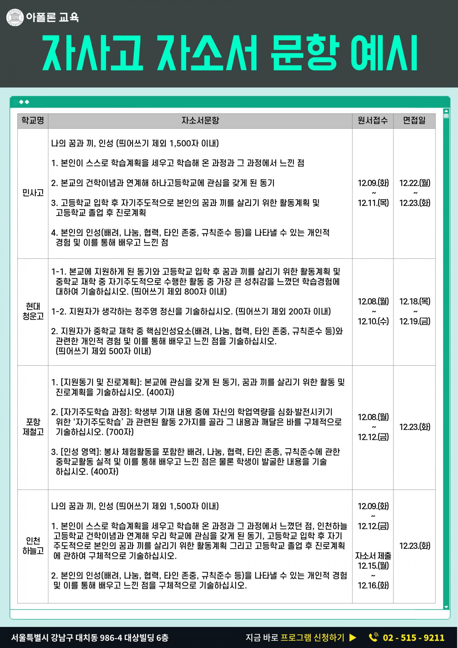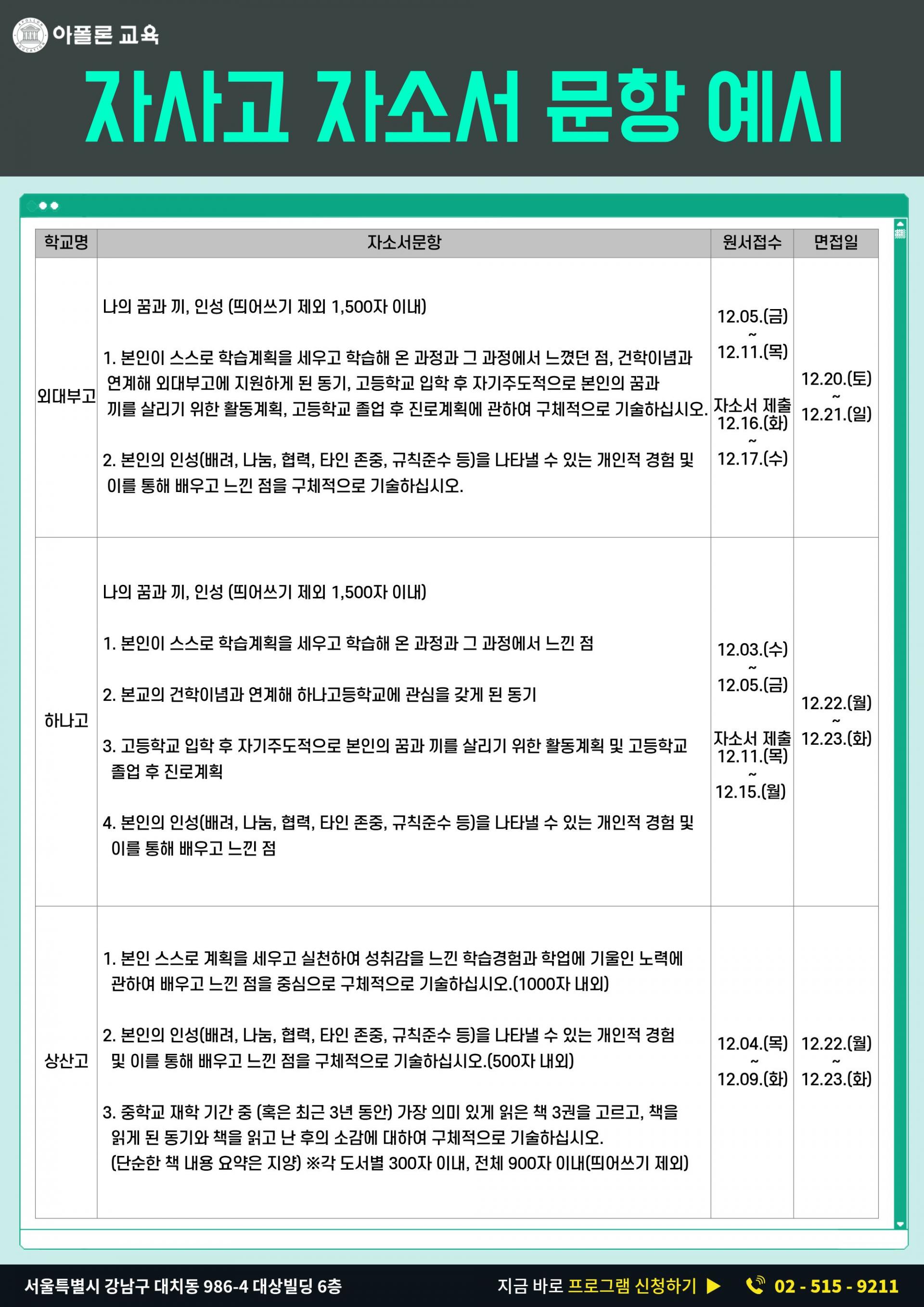 자사고 자소서/면접 프로그램
