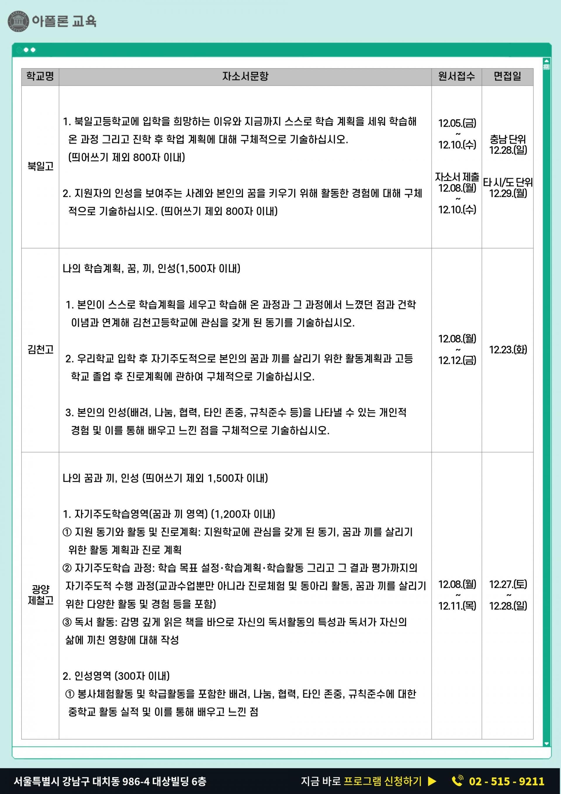 (주)아폴론교육 | 대표 : 신형섭 | 주소 : 서울특별시 강남구 대치동 986-4 (도곡로93길 9) 대상빌딩 6층