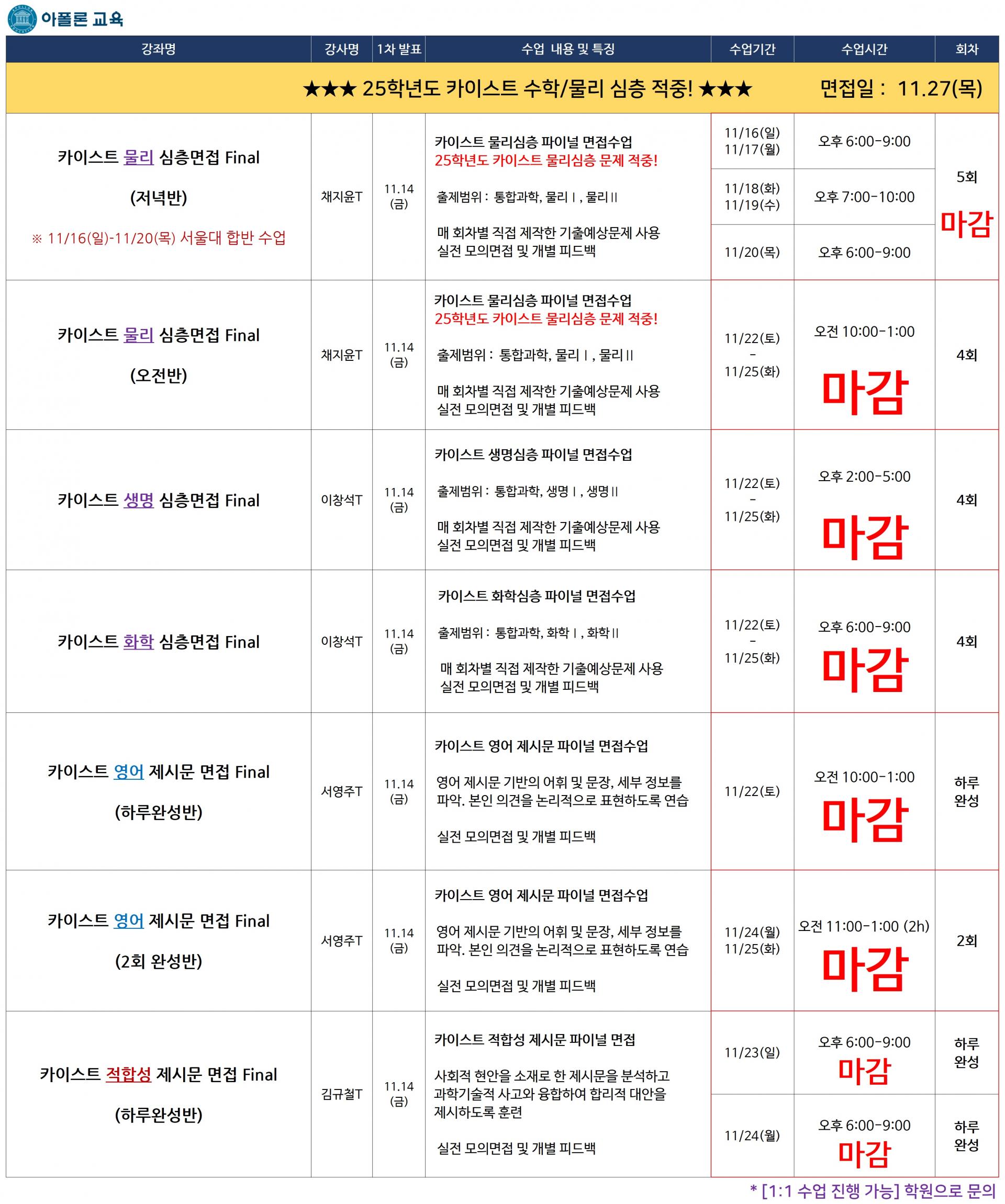 - '수능 후' 면접 Final반
