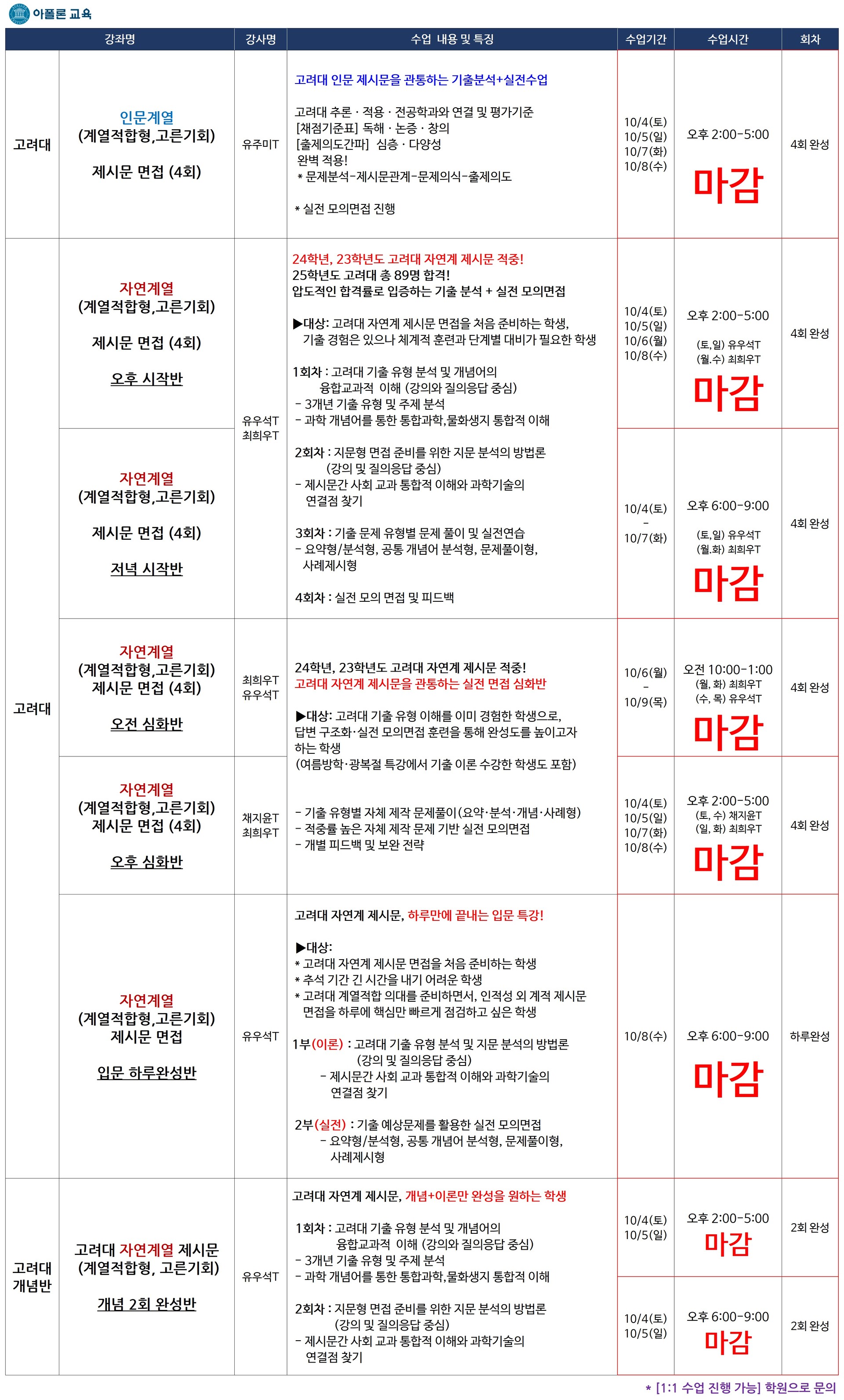- [고려대] 10월 면접특강