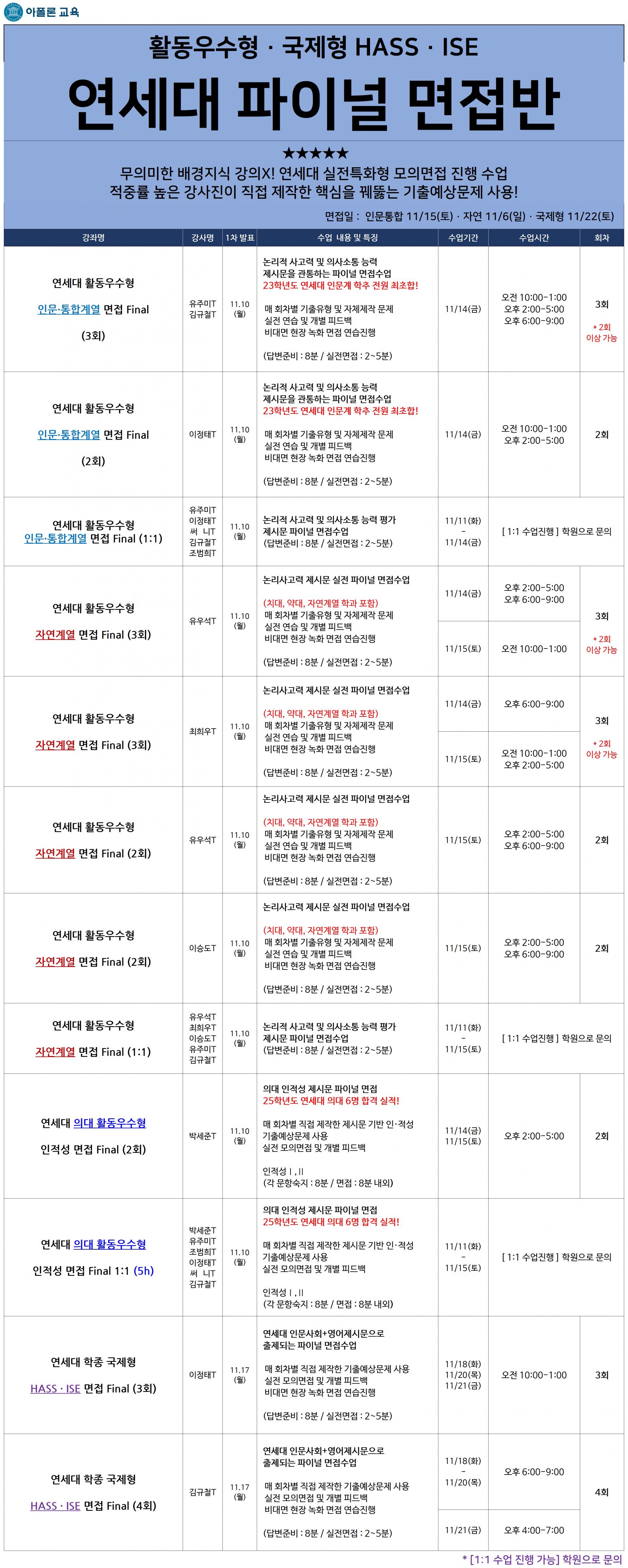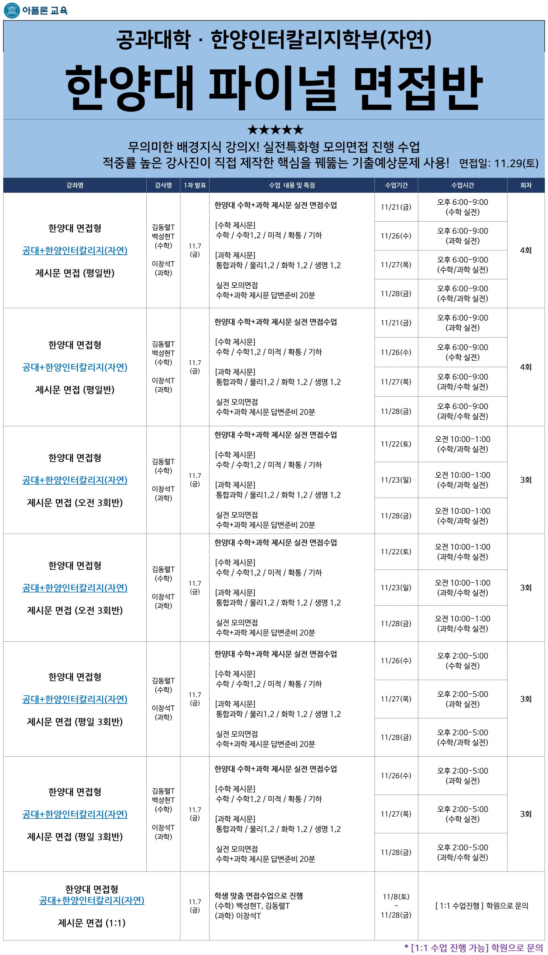 - [한양대] 공대∙인터칼리지(자연) 면접 Final